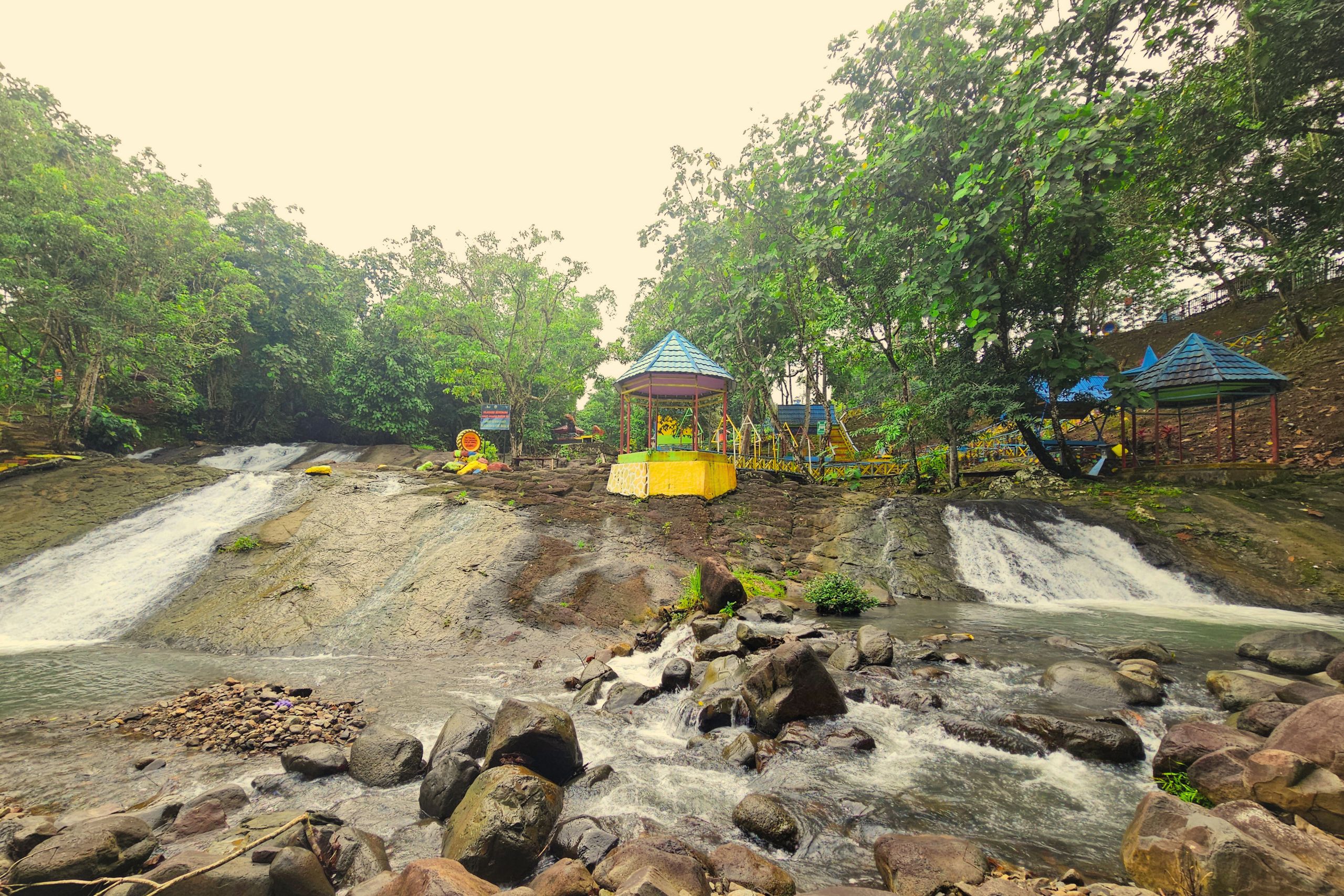 Area Bersantai: Tersedia banyak gazebo dan kursi-kursi santai yang tersebar di sekitar area air terjun, memudahkan pengunjung untuk beristirahat sambil memantau anggota keluarga yang sedang bermain air.